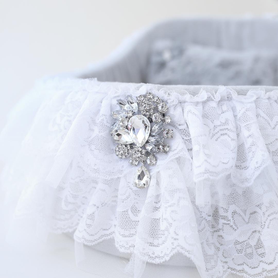 For that beautiful addition to your family, you'll want your pup to have sweet beginnings in our adorable Crib Bed by Hello Doggie, to lull your baby into sweet dreams. Trimmed in two-tiered romantic handmade lace, our cribs also feature a bouquet drop crystal brooch and removable pillow for easy care. Pair with any Hello Doggie Blanket. You'll be the envy of all your friends! Our collection offers four soft colors to choose from. One Size - *20" x 14" x 5 1/2"   |   Pillow inside - 18" x 12"   |   For dogs up to 6 Lbs *Bed is handmade and sizes may vary slightly. Made in USA.