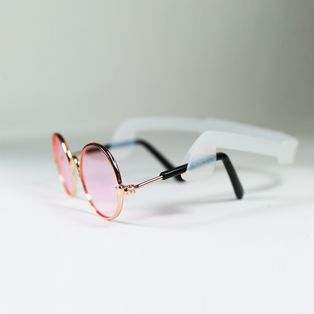 Complete your baby's outfit with a pair of our luxury pet sunglasses. You can choose to pair it with a clear strap or a black strap which keeps the sunglasses securely in place. These stylish glasses are accented with a rose gold frame to add that pizzazz to any attire. Size - Fits small dogs.