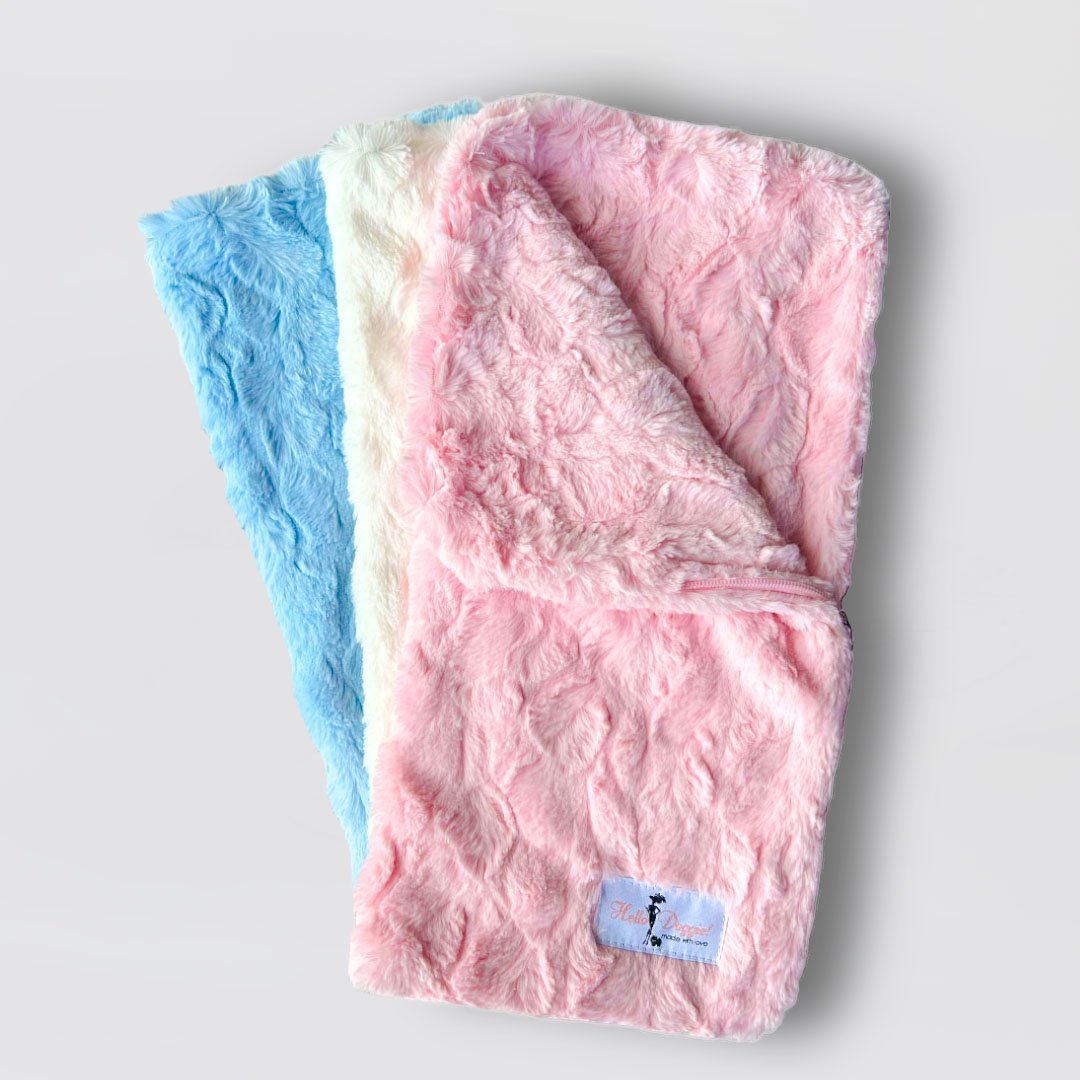 It’s a snuggie for your puppy! Enjoy these Snuggle Pup sleeping bags handmade by Hello Doggie. It has the ability to be unzipped and be used as a blanket or to swaddle your baby after a bath. A great way for new moms to take their babies home. Made with the most luxurious Bella fabric, they keep your baby warm and dainty all at once. Machine washable, delicate was in warm water. Delicate dry.  Zipped Up - 17 1/2" x 9"   |   Unzipped  - 18" x 17"   |   Holds dogs up to 4 Lbs *Snuggle pup is handmade and sizes may vary slightly. Made in USA.