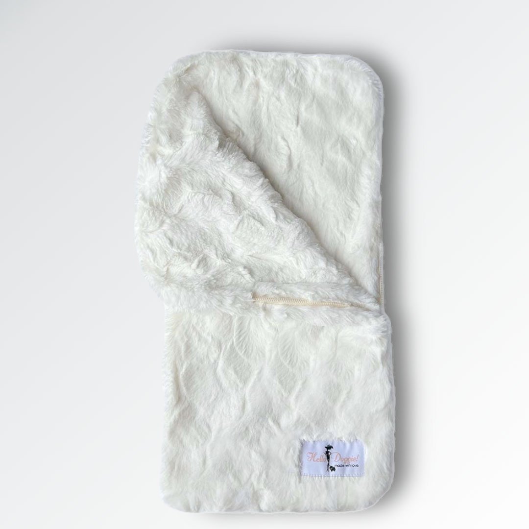It’s a snuggie for your puppy! Enjoy these Snuggle Pup sleeping bags handmade by Hello Doggie. It has the ability to be unzipped and be used as a blanket or to swaddle your baby after a bath. A great way for new moms to take their babies home. Made with the most luxurious Bella fabric, they keep your baby warm and dainty all at once. Machine washable, delicate was in warm water. Delicate dry.  Zipped Up - 17 1/2" x 9"   |   Unzipped  - 18" x 17"   |   Holds dogs up to 4 Lbs *Snuggle pup is handmade and sizes may vary slightly. Made in USA.