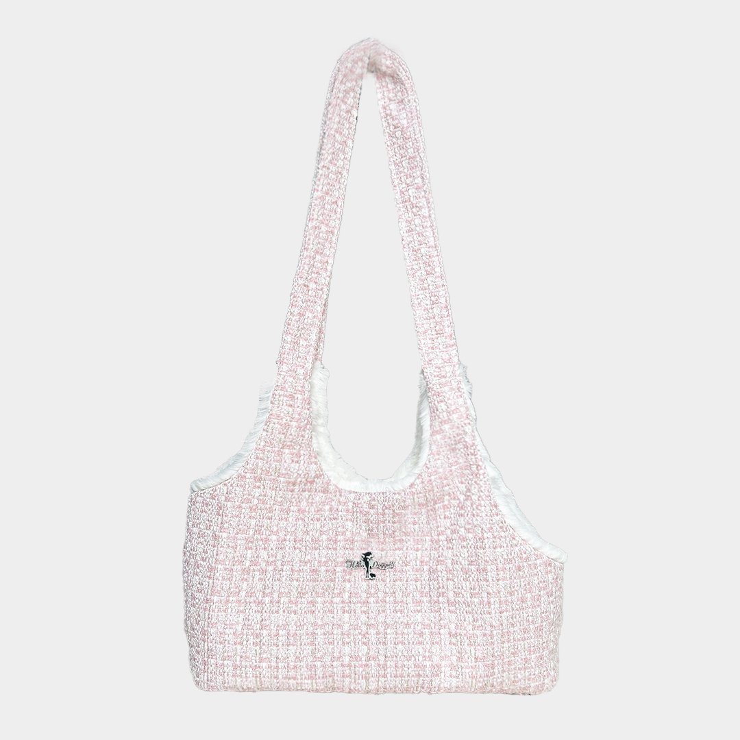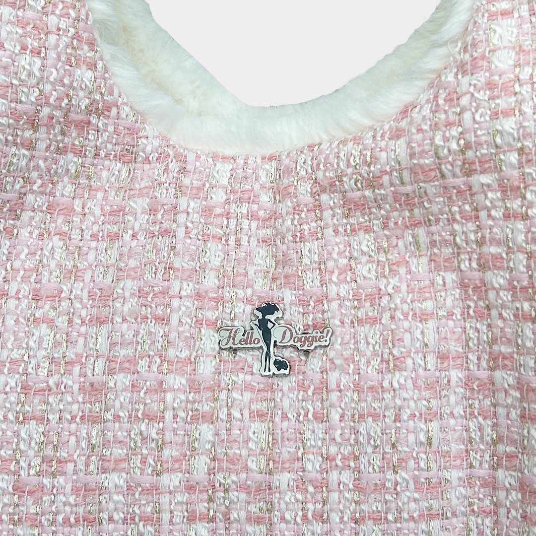 "Introducing the luxurious Annabella Dog carrier by Hello Doggie, a blend of style and functionality like no other! Crafted from our exquisite pearl tweed fabric and lined with soft faux fur, this carrier ensures your beloved pet travels in ultimate comfort and sophistication. The beautiful design includes a headrest, giving your furry companion a view of the world while securely harnessed in with our safety tether. The satin pocket with YKK zipper provides a chic touch for storing essentials, while the magnetic snap closure adds an extra layer of security. For easy care, simply spot clean or wash cool on delicate cycle without bleach or softener, and air dry or tumble on low. Take your pet's travel experience to the next level with the Annabella Dog Carrier and  matching Annabella Dog Harness, where luxury meets practicality. LIMITED EDITION  One Size   15"" L x 6"" W x 10"" H | For dogs up to 7lbs  *Carrier is handmade, size may vary slightly. Made in USA.* "